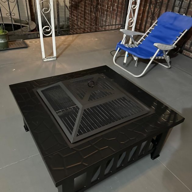 32 Inch 3 in 1 Outdoor Square Fire Pit Table with BBQ Grill and Rain Cover for Camping